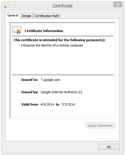 Wildcard seem like a pretty silly thing. Are they completely useless? Well, no. They do serve a valuable function, and that is to provide a low cost certificate that you can use on a variety of your devices to ensure traffic is encrypted. A Bank would NEVER use a wildcard cert. Google uses wildcard certs where they just need to ensure encryption, such as when you search. However, Google uses a full Subject Name on certificates for things like Gmail, where you need to validate the server’s identity.
