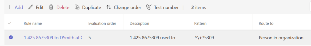 Rather than throw any name and description in, plan out a bit of a naming standard. You’ll thank yourself later once you’ve got a few dozen rules. Something like “+1 425 8675309 to David” isn’t as meaningful as “1 435 8675309 to DSmith at Contoso.com” with a description of “1 425 8675309 used to belong to Jenny Jones. Ticket 342352” is much better. Note the inclusion of your ticket number so that you can find more details (and so you don’t have to write the full story here).