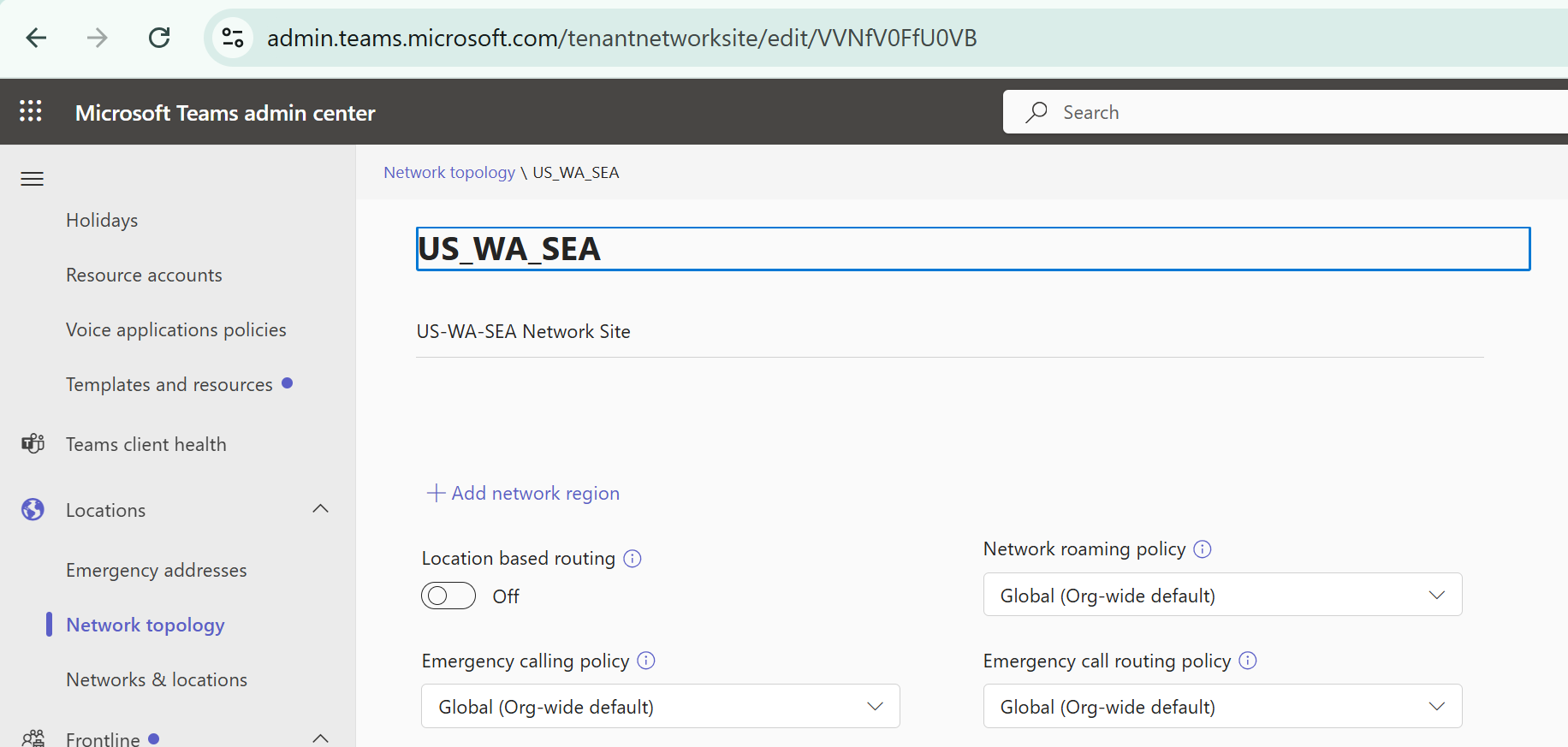 These are the Network Roaming Policy, Emergency Calling Policy, and Emergency Call Routing Policy. Note that these policies can also be user-assigned and have Global/Default policies. These site-assigned policies exist because users may work from multiple sites, and for these three policies it makes sense to have them be site-assigned. A site-assigned policy takes precedence over a user-assigned policy and a global policy.